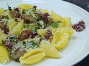 Slice the sausage, drain the pasta