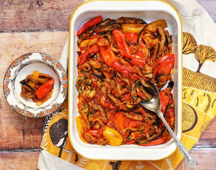 Ratatouille is a really healthy dish and the best way to make it is to roast each of the vegetables separately. This might appear to be a bit of a faff, but it does ensure that you can taste all the individual flavours in the dish. It is a dish for those days where you feel like pottering about in the kitchen and have time to prepare a meal. I find cooking relaxing and I enjoy it – but it is also worth mentioning that some people don’t enjoy it at all and find meal preparation a chore, there is tinned ratatouille available but most will contain onion which is a fructan’s, so if you can tolerate fructan’s by all means have the tinned variety instead. (I don’t have an issue with tinned vegetables – they are perfectly acceptable and contain good sources of nutrition.)